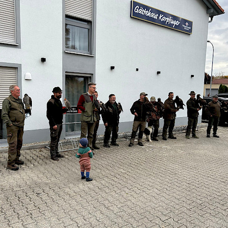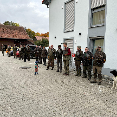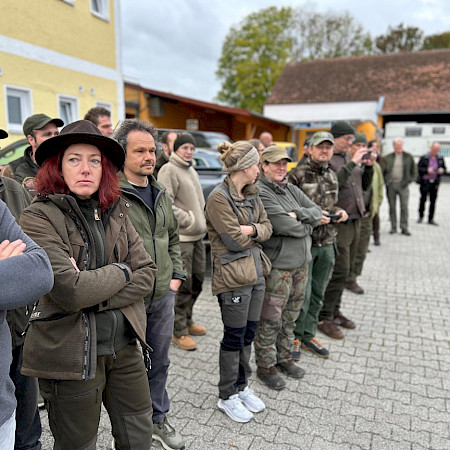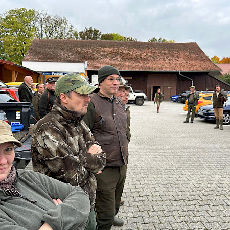 Im Anschluss wurden die Teilnehmerinnen und Teilnehmer entsprechend der vorgesehenen Wildarten in fünf Gruppen eingeteilt. Dann machten sich die Mitglieder auf den Weg in die umliegenden Reviere, die sich an diesem Tag bei strahlendem weiß-blauen Himmel von ihrer besten Seite zeigten. Das Wetter war nahezu ideal: milde Temperaturen, klare Sicht und ein leichter Herbstwind, der die Landschaft in ein besonderes Licht tauchte.