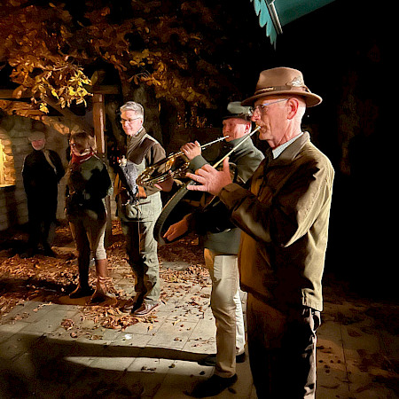 Um 19 Uhr wurde schließlich die Strecke gelegt – ein Moment voller Tradition und Würde. Die Gesamtstrecke des Tages belief sich auf 17 Hasen, 2 Fasane und 6 Krähen. Dieses Ergebnis unterstreicht den erfolgreichen Verlauf der Beize und die hohe Qualität der bereitgestellten Reviere.