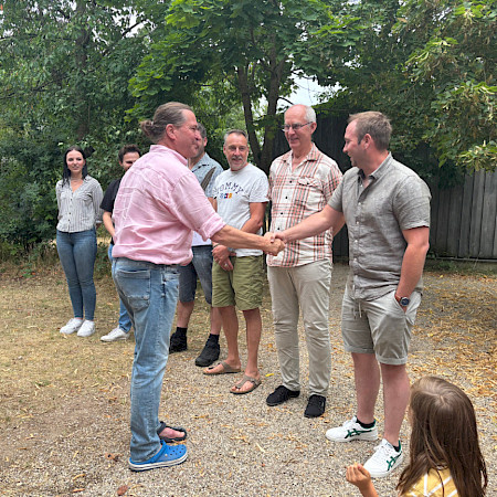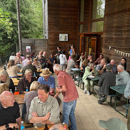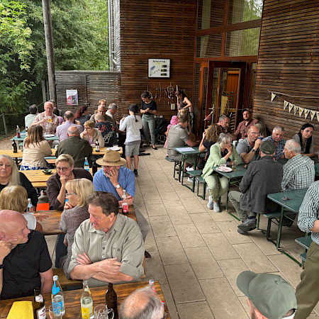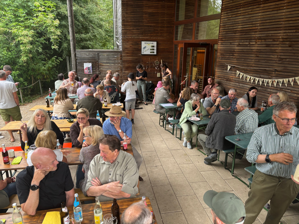 Ein rundum gelungenes Sommerfest ist immer auch der Erfolg von vielen. Ein Dank also an den LBV, der uns seine schöne Auffangstation als Party-Location zur Verfügung stellte (bei der abendlichen Spendensammlung kamen wahrhaftig 900 Euro zusammen, die den dort gepflegten Greifvögeln zugutekommen) und Ferdinand Baer für die Organisation. Dank auch an alle, die Salate und Nachspeisen mitgebracht haben. Sowie natürlich an den Gastgeber Michael Mickisch – und nicht nur für die Alte Marille.