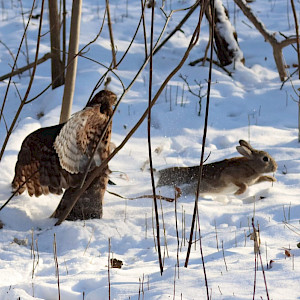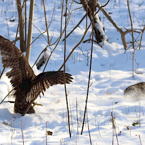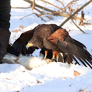 Am 10.01.2026 fand bei sonnigem Winterwetter die Neujahresbeizjagd unseres LVs statt. Den Witterungsverhältnissen geschuldet, waren alle Vögel, ein Harris Hawk und zwei Habichte, etwas über ihrem Idealgewicht. Dennoch bot sich den Interessierten ein spannendes Bild: Die Vögel zeigten allesamt spektakuläre und ambitionierte Flüge, in deren Summe ein Wildkaninchen zur Strecke gebracht werden konnte. Im Anschluss folgte ein geselliges Beisammensein.