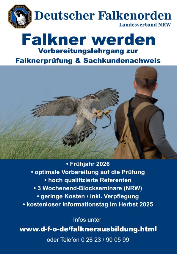 Weitere Informationen entnehmen Sie gerne dem Reiter "Falknerausbildung".