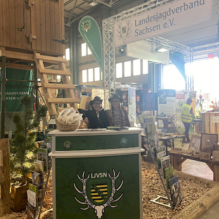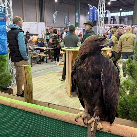 Am Stand des DFO-Landesverbands Sachsen konnten die Messegäste Beizvögel aus nächster Nähe erleben – darunter Steinadler, Falken und Bussarde. Fachkundige Falkner erklärten die Besonderheiten der einzelnen Arten, ihre Jagdtechniken und die anspruchsvolle Ausbildung der Vögel. Besonders eindrucksvoll war die Erläuterung zum Abtragen – jener Phase, in der der Vogel Vertrauen zu seinem Falkner aufbaut und schrittweise an die Umwelt gewöhnt wird.