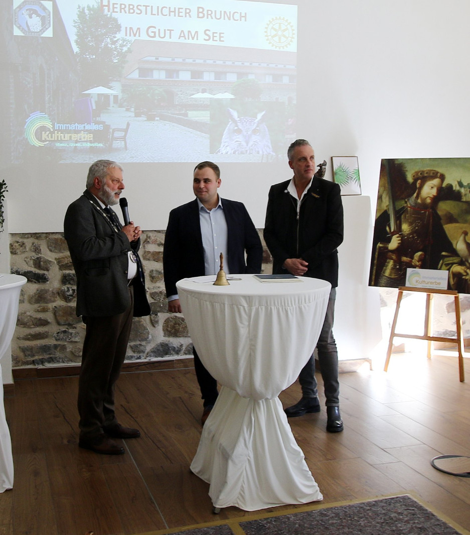 So lud der Rotary Club Görlitz zu einem herbstlichen Brunch in das Gut am See, einem stimmungsvollen Restaurant (und Hotel) in Görlitz-Tauchritz ein. Dieser Einladung folgte nicht nur der Governor Daniel Neuer, sondern auch Freunde vom RC Dreiländereck, vom RC Großenhain Röder-Elbe Dreieck und schließlich waren auch vom befreundeten polnischen Rotary Club aus Jelenia Gora (Hirschberg) Clubmitglieder gekommen. So waren die gut einhundert Plätze im Saal bald vollständig belegt. Nach der Begrüßung der Gäste lud das umfangreiche Buffet zu einem genussvollen Frühstück ein. Anschließend nahm der Präsident Andreas Bednarek Johannes Töpler als neues Mitglied in den Rotary Club Görlitz auf.
