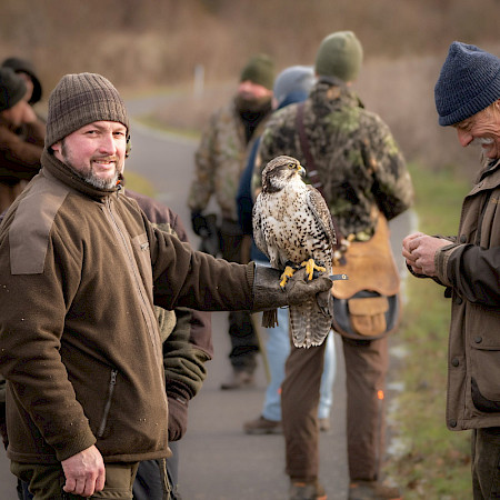 Insgesamt nahmen 16 Falkner mit 14 Beizvögeln an der Neujahrsbeize teil. Besonders erfreulich war die Beteiligung des Nachwuchses: knapp zehn Falkneranwärter der Jagdschule Moritzburg des Jagdverbands Dresden e. V. nutzten die Gelegenheit, um praktische Einblicke in die Beizjagd zu gewinnen. Weitere Unterstützung kam vom Deutschen Bogenjagdverband. Sechs Teilnehmer, die sich zeitgleich zu einer Tagung in einem der Reviere aufhielten, halfen als Treiber und unterstützten dabei insbesondere die Steinadler-Gruppe.