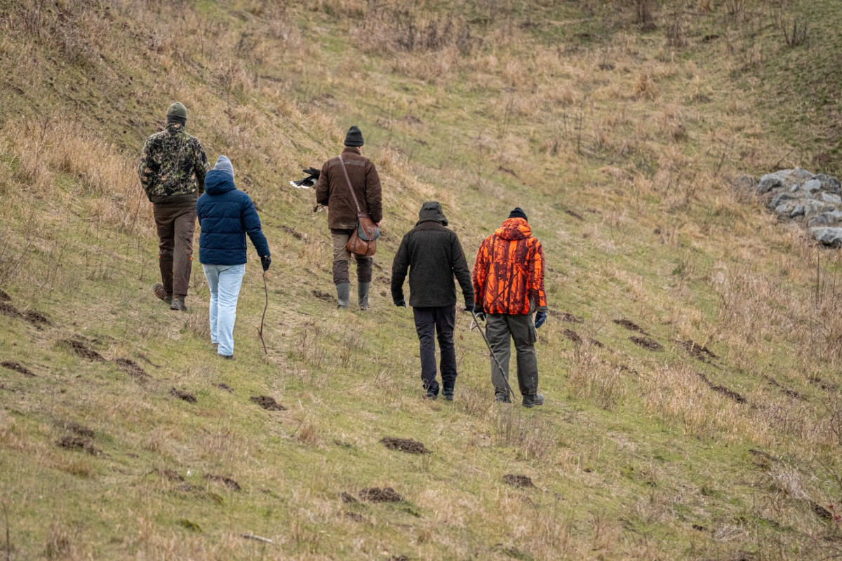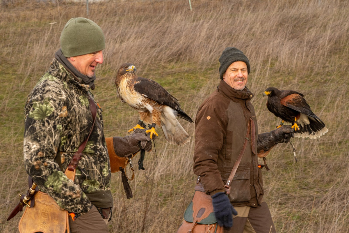 Gejagt wurde in insgesamt drei Revieren. Eines davon war so weitläufig, dass dort zwei Falknergruppen gleichzeitig beizen konnten. In den Revieren waren also zwei gemischte Gruppen unterwegs, zudem eine eigenständige Gruppe mit Steinadlern sowie eine Gruppe mit Harris Hawks. Ergänzend wurden Krähenjagden aus dem Auto durchgeführt.